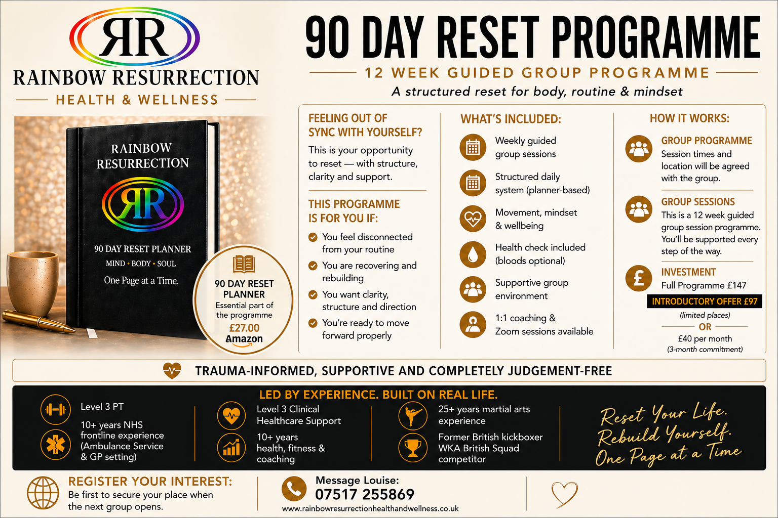 Break out of survival mode and rebuild your routine, mindset and direction with a structured 12-week programme designed for real life.